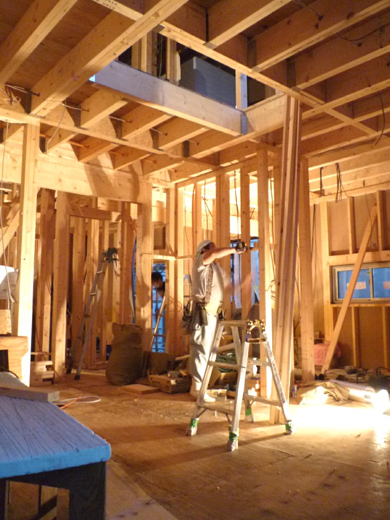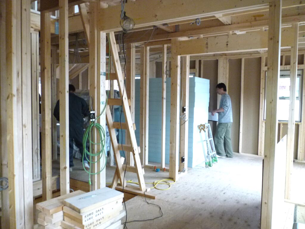 周りをウロウロ。足場屋さん3名、設備屋さん3名、電気屋さん1名、大工さん2名。
