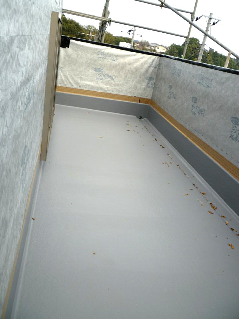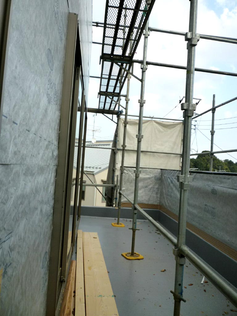 さてベランダには何故か笠木になる部分には黒いテープが貼られています。