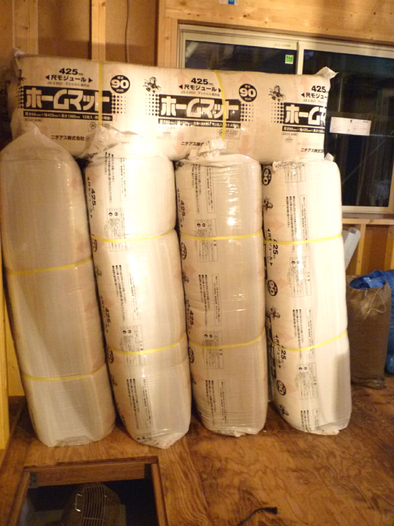 屋根用断熱材「スタイロフォーム12センチ厚」などなどが搬入されていました。