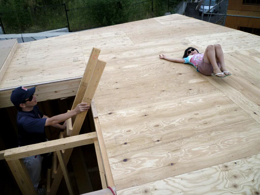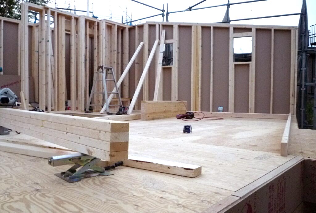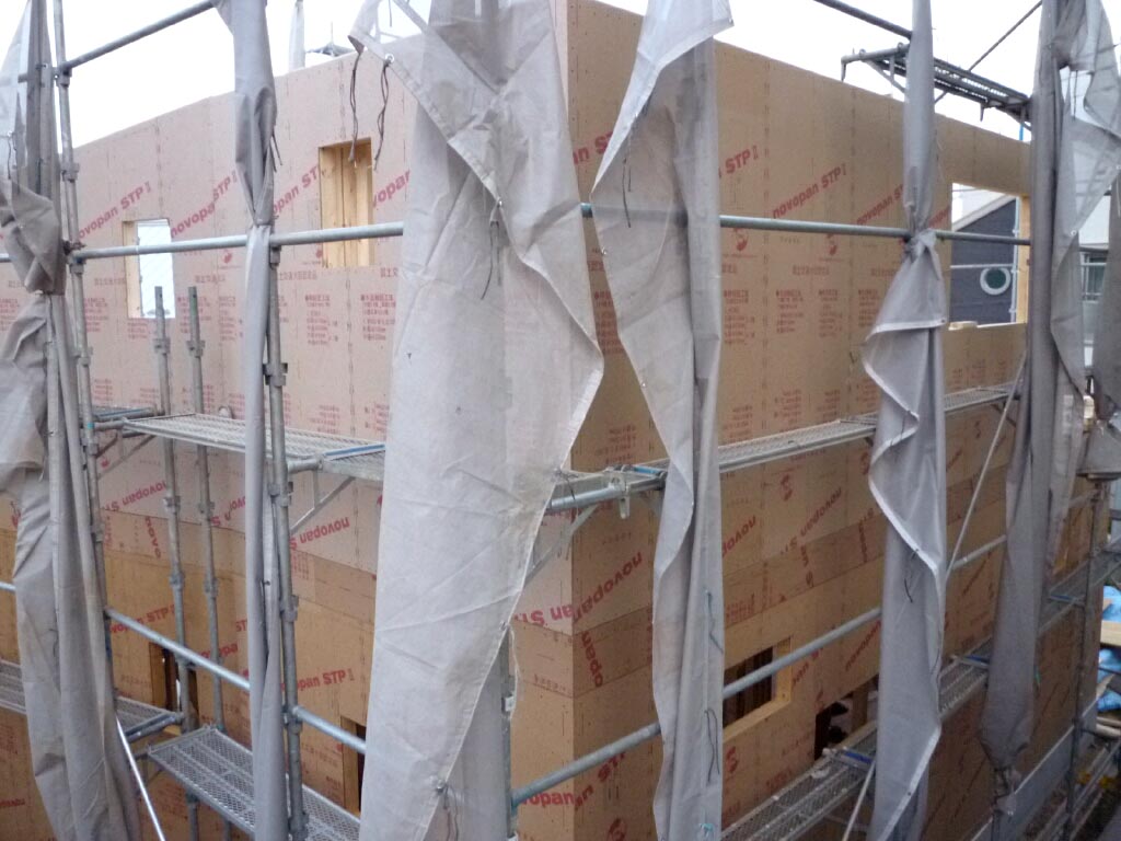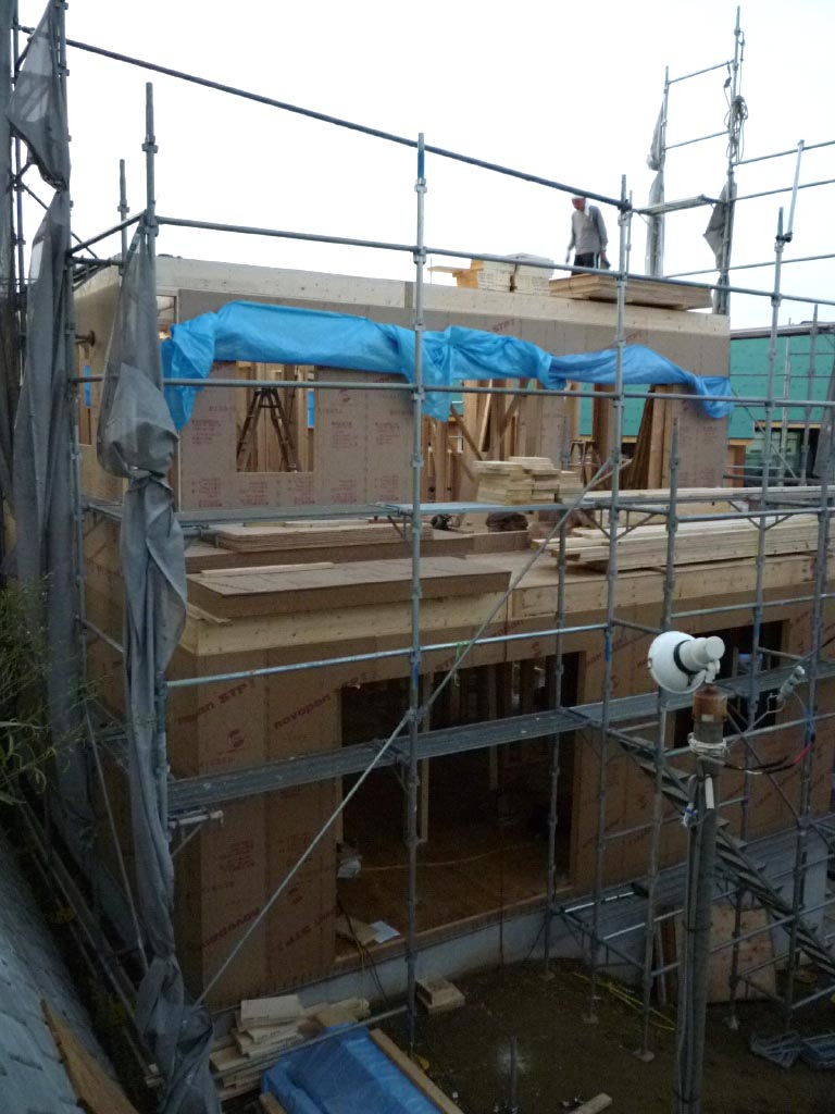 木工事に入ってから初めての小雨…濡れるのいややなぁー、