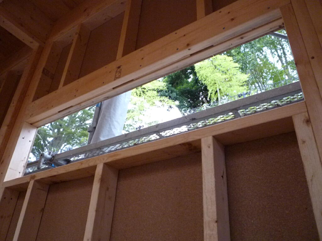 ここは風呂の高め窓、湯船につかった気分で見上げるとこんな感じ。