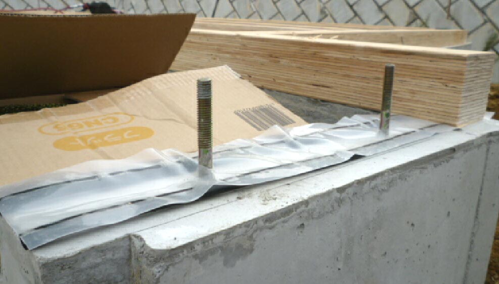 基礎との間にゴム製品と湿気を遮断するシートが挟まれています。