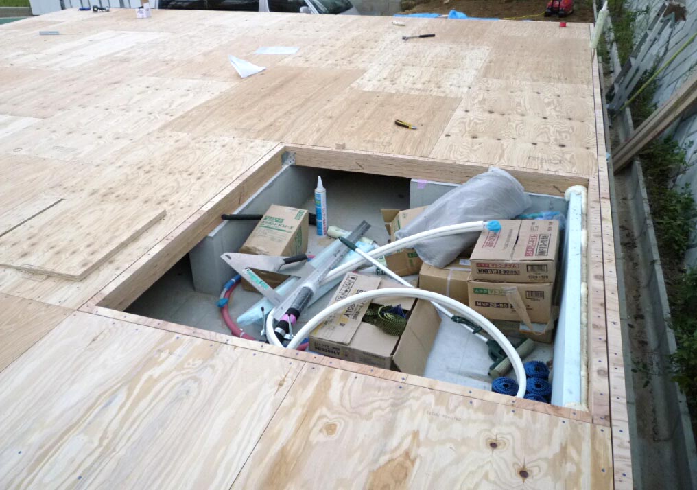 大工さんによると基礎にはちゃんと水抜き穴があるから大丈夫よ〜と。