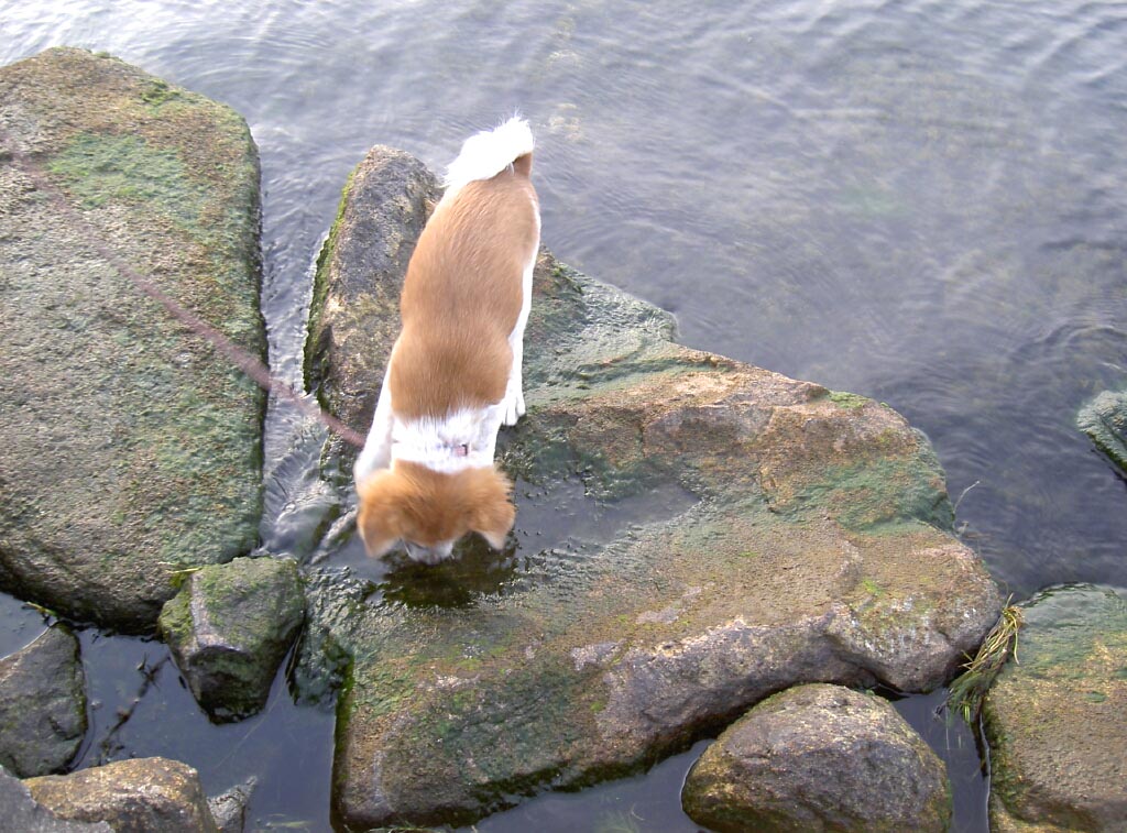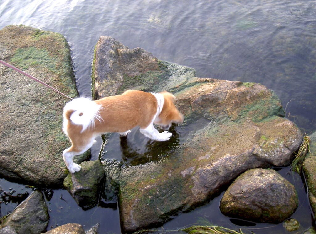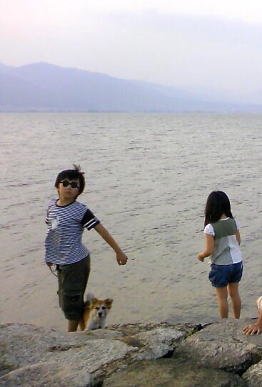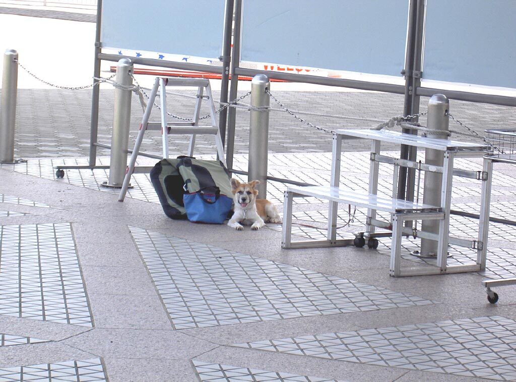 船着き場で放浪の旅芸人みたいに待っているぼたんです。