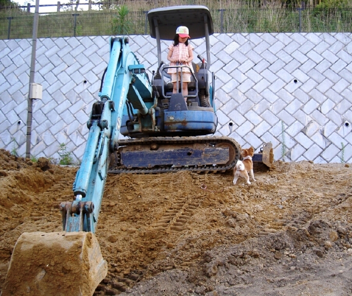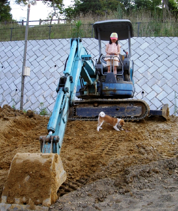 ミニ忍あーちゃんはパワーショベルに乗り込んで工事中。