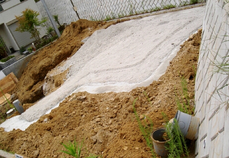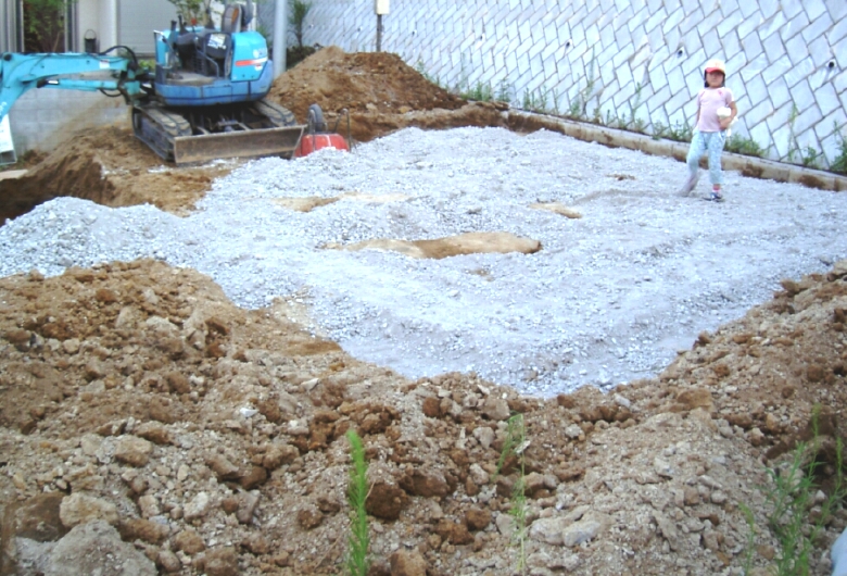 さて、家の土台になりそうな所には砂利が敷かれています。