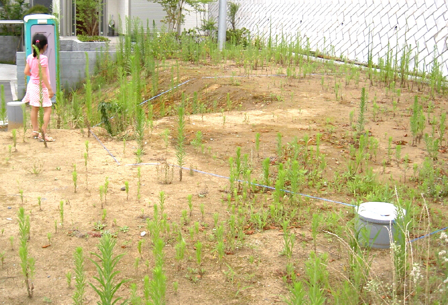 仮設水道、仮設トイレ、立看板も準備完了。