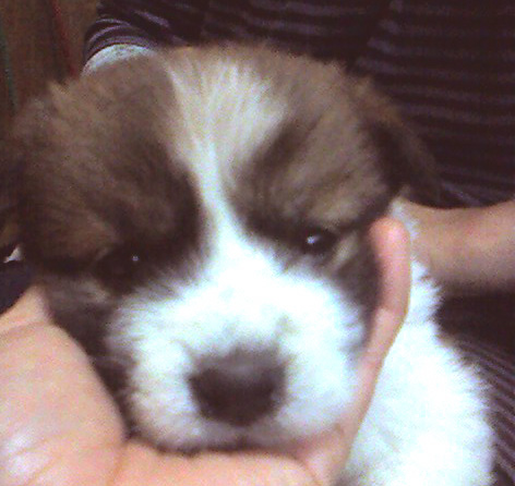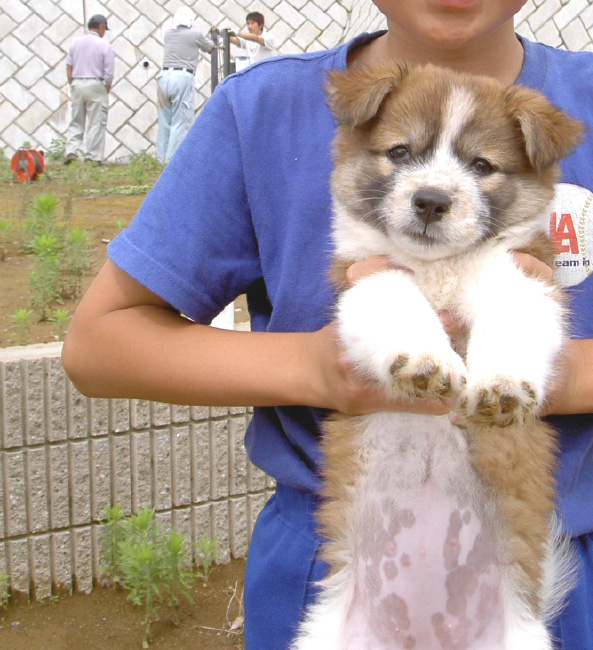 抱っこされてお腹のまだら模様が牛の様でお恥ずかしい。