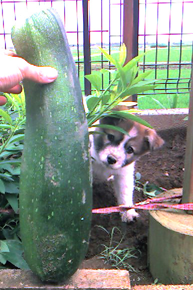 おばけズッキーニ約40センチ強にびびったぼたんです。